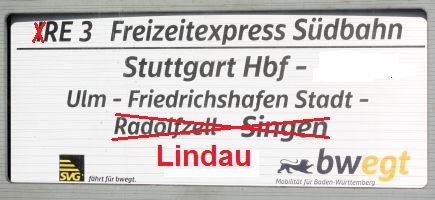 (Zugnummernwechsel) - Ulm Hbf 8:03/06 - Friedrichshafen Stadt 9:16/24 - Singen(Htwl) 11:00 |