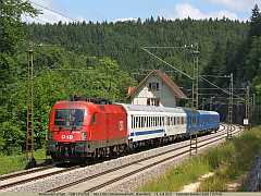 Der Alpen-Sylt-Nachtexpreß auf der Rückfahrt kurz vor dem Endbahnhof. Talmühle (Baden) [km 129,9] am 18. Juli 2021 |