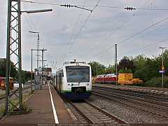 BSB VT005 fährt in Waldkirch ein, SWEG VT 504 wartet derweil auf Ausfahrt RichtungDenzlingen/Freiburg.