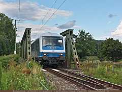 BSB VT 007 bzw. ein Wittenberger Kopf im Ersatzverkehr überqueren die Elz kurz vor Denzlingen.