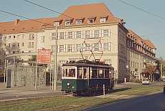 Tw 80 Vor der Endschleife Parkallee befindet sich auch eine Abstellanlage, an der Tw 80 soeben vorbei Richtung Innenstadt fährt.