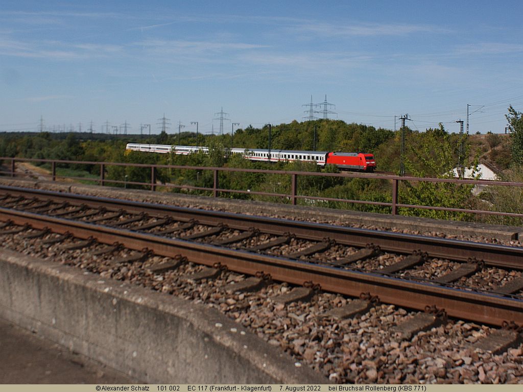 EC 117 unterquert in wenigen Sekunden die Verbindungskurve Ubstadt, um dann im Rollenbergtunnel für die nächsten Minuten zu verschwinden.