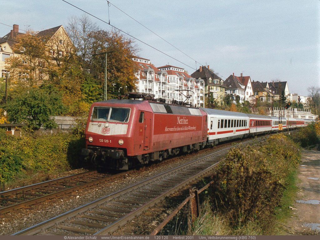 Ein IC in gemischter Lackierung rollt in Ulm ein