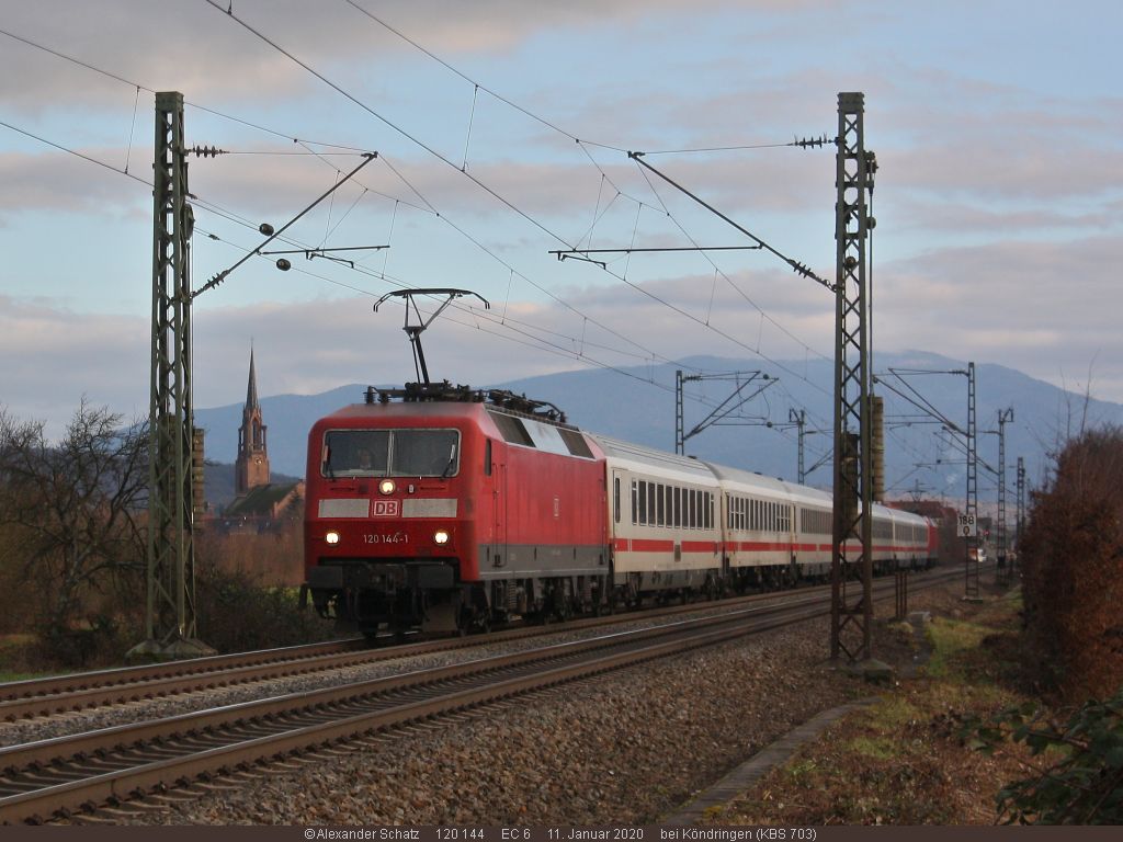 120 144 und 120 105 sind mit einer Ersatzgarnitur als EC 6 hier Richtung Karlsruhe unterwegs