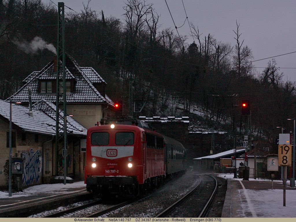 EFZ-Dreikönigsdampf-Rundfahrt mit der vereinseigenen 140 797 in Ersingen kurz vor Pforzheim