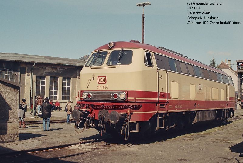 Die "zurückgenummerte" 217 001 steht anläßlich des Jubiläums 150 Jahre Rudolf Diesel