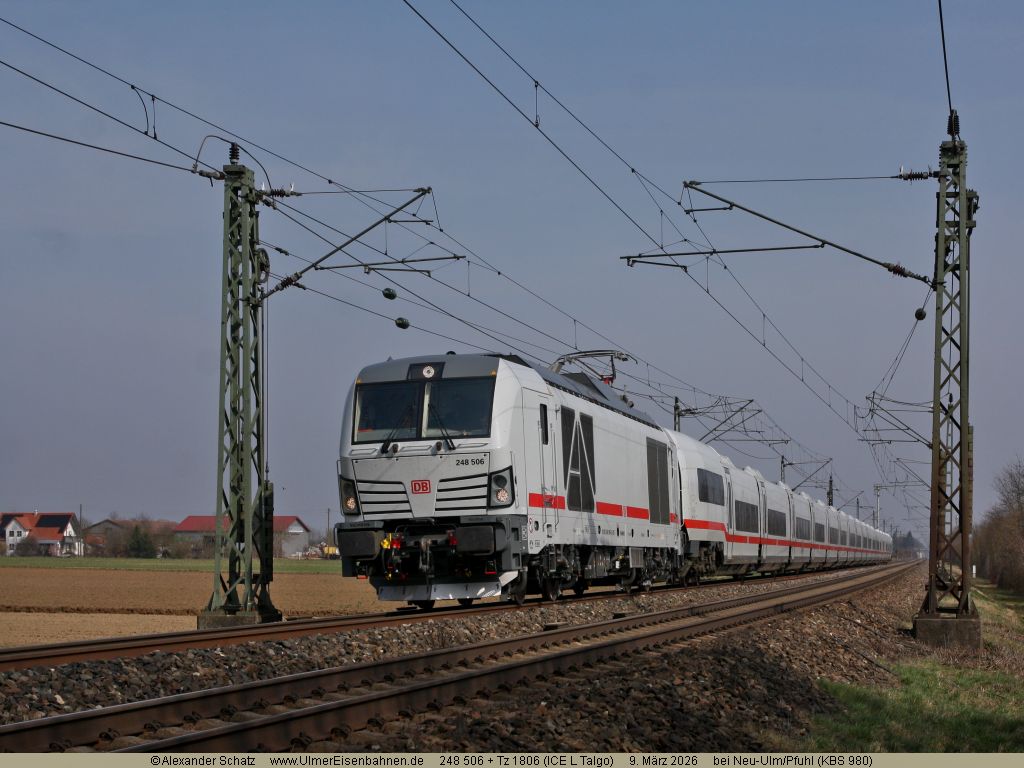 Eine vollständige ICE L-Garnitur auf dem Weg von München über Ulm zu einer Messfahrt auf der Geislinger Steige und über die SFS Wendlingen-Ulm nach Lindau