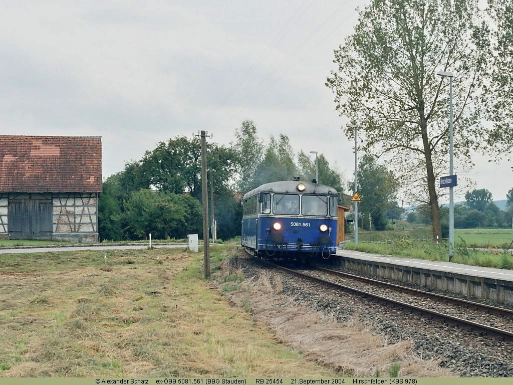Im Jahr 2004 zeigt sich die Mittelschwabenbahn noch unsaniert und mit ÖBB-Schienenbus