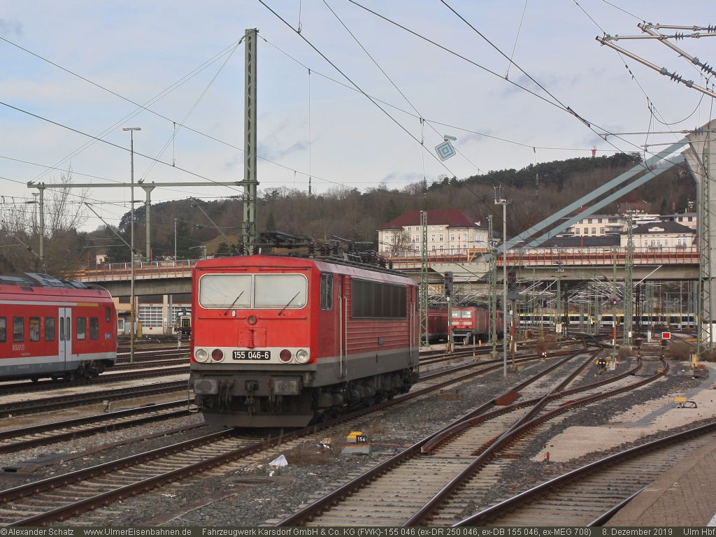 152 097 mit Gruber-KLV hat soeben den Ulmer Rbf verlassen und fährt nun durch den Ulmer Hbf gen Augsburg/München. Zuvor fuhr der Zug von Stuttgart kommend über die Ulmer Güterumgehung in den Rbf gefahren, da der Anschluß von Stuttgart in den Ulmer Hbf seit 2 Wochen gesperrt ist.