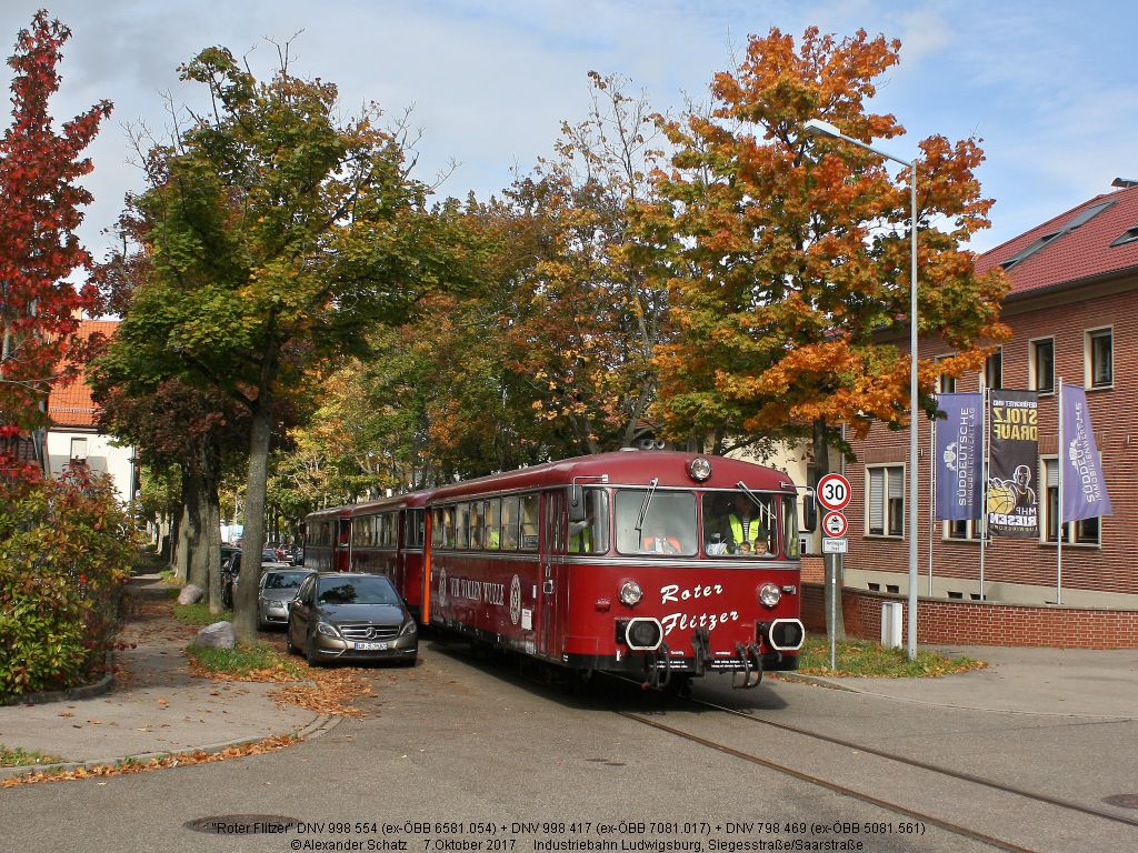 Schienenbus, Baumallee und die Sonne ist da, das paßt!