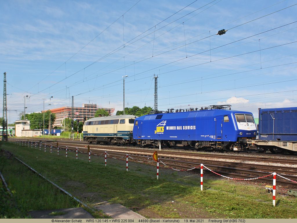 in Zug mit mehreren WRS-Loks an der RoLa-Verladung in Freiburg Gbf