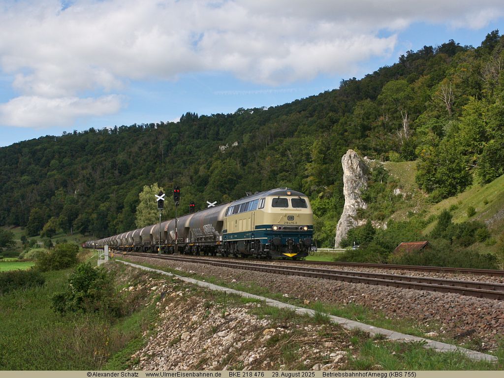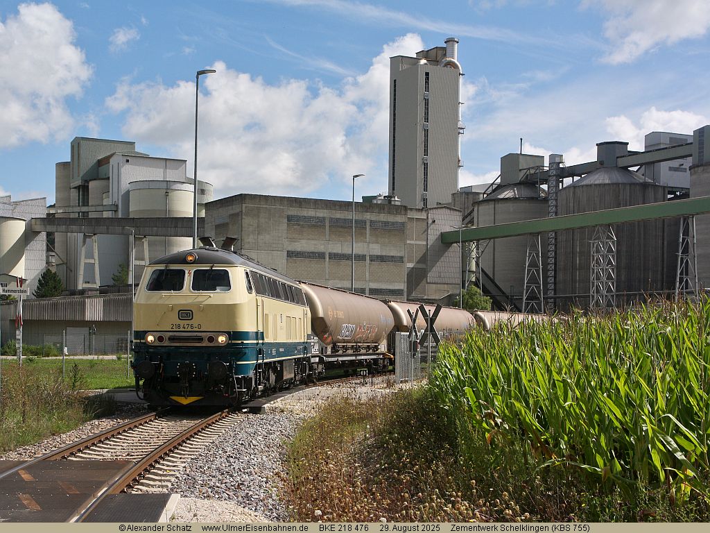 Einsatz der BKE-218 476 am Kohlestaubzug zum Zementwerk Schelklingen