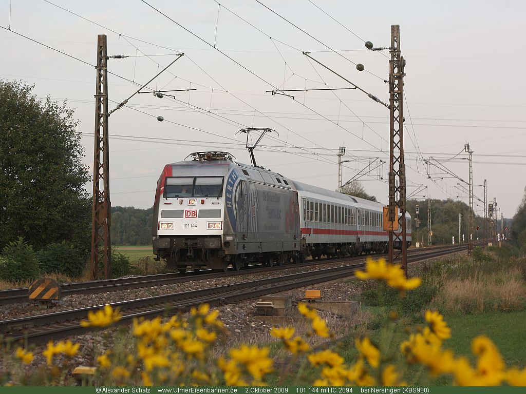 "Hertha BSC"-101 144 bei der Anreise zu ihrer kurzen Stippvisite in Ulm am Ortsrand von Nersingen. (2.Oktober 2009)