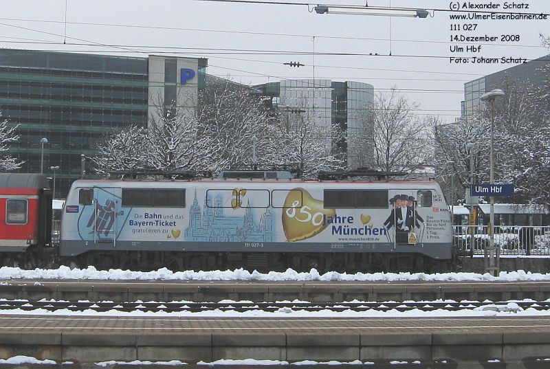 Bis nach Ulm führt der Weg der Münchner 111er: Hier die Lok zum 850.Jubiläum