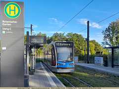 Die höchste Straßenbahn-Haltestelle Deutschlands: Tw 49 fährt ein.